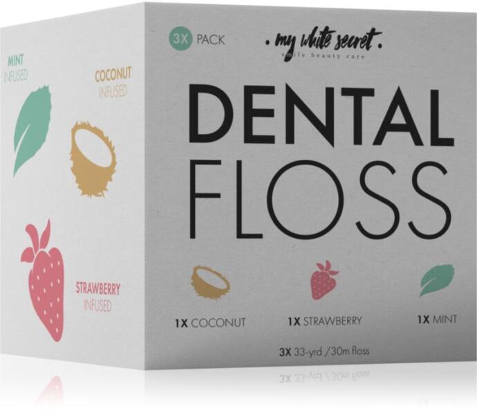 My White Secret Dental Floss fogselyem Coconut, Mint, Strawberry 3 db